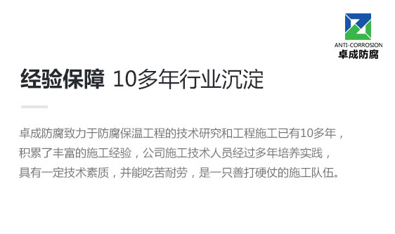 浙江卓成防腐工程有限公司(原名上虞市達(dá)成防腐工程有限公司)成立于2005年,注冊資本1000萬元,是一家專業(yè)承包防腐保溫工程施工企業(yè),公司座落在紹興市杭州灣上虞經(jīng)濟(jì)技術(shù)開發(fā)區(qū)。公司現(xiàn)有職工60余人,其中專業(yè)技術(shù)人員15人,公司下設(shè)多個項目經(jīng)理部。公司致力于防腐保溫工程的技術(shù)研究和工程施工,生產(chǎn)設(shè)備齊全,技術(shù)工藝先進(jìn),積累了豐富的施工經(jīng)驗,具有較雄厚的經(jīng)濟(jì)實力。公司施工技術(shù)人員經(jīng)過多年培養(yǎng)實踐,具有一定技術(shù)素質(zhì),并能吃苦耐勞,是一只善打硬仗的施工隊伍。